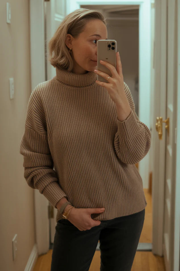 Crafted from a soft, high-quality knit, this sweater offers a refined ribbed texture and a flattering extended turtleneck design. The slim silhouette hugs the body beautifully while staying comfortable and easy to layer.